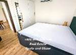 бассейн и территорию комплекса в цветах и зелени. На кухне установена стиральная машина. Спальня – большая и